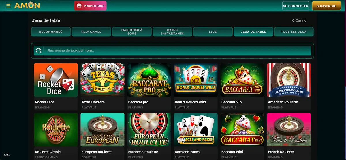 La bibliothèque de jeux d’Amon Casino est l’un de ses points forts. Elle combine quantité, qualité et diversité, avec une belle sélection de fournisseurs de renom et des mises à jour régulières. Que vous soyez amateur de machines à sous, fan de live casino ou joueur de table stratégique, vous trouverez forcément votre bonheur. Ce n’est pas juste un site qui empile les jeux pour faire joli : on sent que chaque section a été pensée pour offrir une expérience complète et plaisante.