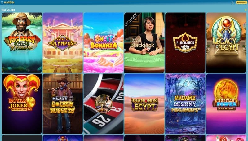 Quand on arrive sur Amon Casino, ce qui frappe assez vite après l’inscription, c’est la richesse de l’univers de jeu proposé. Si certains casinos se contentent de quelques dizaines de machines à sous et de deux ou trois tables de blackjack mal animées, ici, ce n’est clairement pas le cas. Amon Casino a visiblement compris qu’un bon casino en ligne, ce n’est pas seulement une belle vitrine avec un gros bonus d’entrée… c’est aussi et surtout une sélection de jeux qui donne envie de rester.