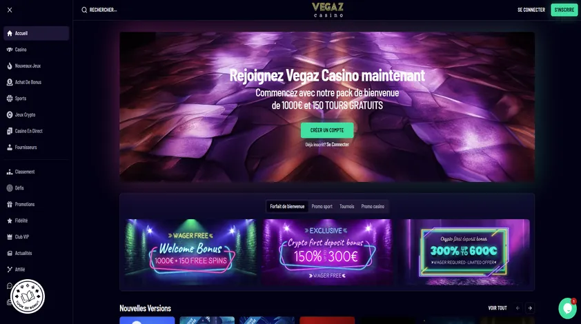 Avec un nom qui claque et une plateforme visuellement soignée, Vegaz Casino cherche clairement à marquer les esprits dès la première connexion. Entre bonus attractifs, catalogue de jeux bien fourni et moyens de paiement variés (y compris les crypto-monnaies), ce casino en ligne s’inscrit dans la nouvelle génération des sites qui veulent séduire un large public de joueurs, qu’ils soient débutants ou déjà bien rodés.